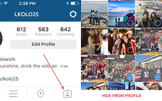 Saat sobat ditag pada sebuah foto postingan teman sobat, sobat bisa memilih foto tersebut untuk tampil di Instagram atau tidak. Jika ingin menyembunyikannya, sobat bisa melakukan dengan cara klik dibagian tag lalu Edit Tags, Pilih Hide from Profil. Lalu pilih foto mana saja yang akan disembunyikan.